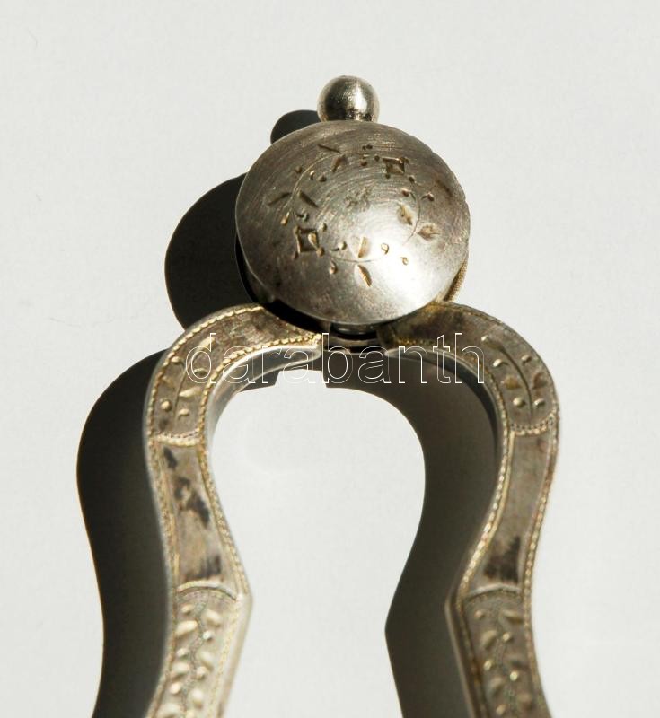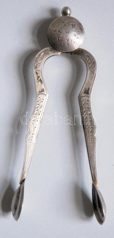 ~1900. Dekoratív ezüst cukor fogó csipesz díszes kézi megmunkálással, ... https://www.darabanth.com/de/155-Fernauktion/155.0/Numismatik/Juwelen~5000338/7E1900-Dekorativ-ezust-cukor-fogo-csipesz-diszes-kezi-megmunkalassal-nemesfem-es-otvos-j~II486503