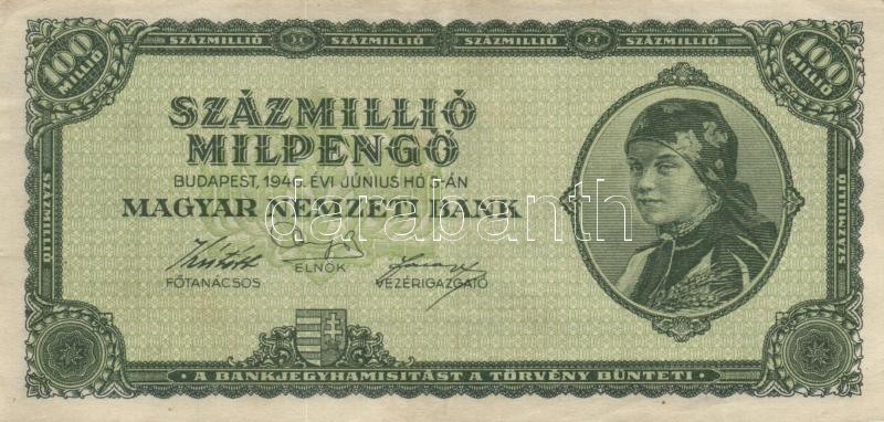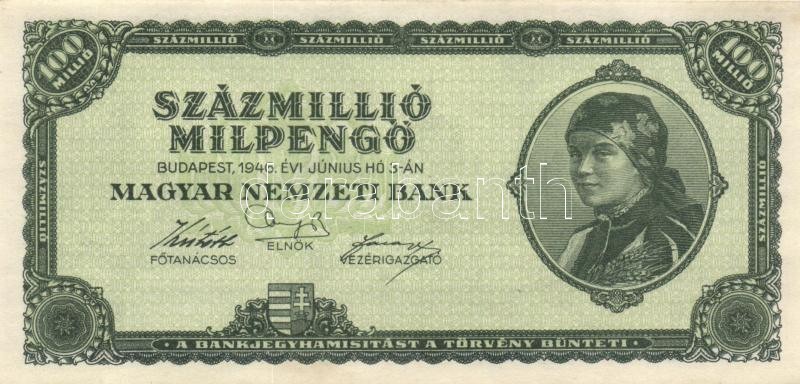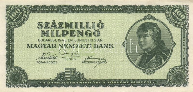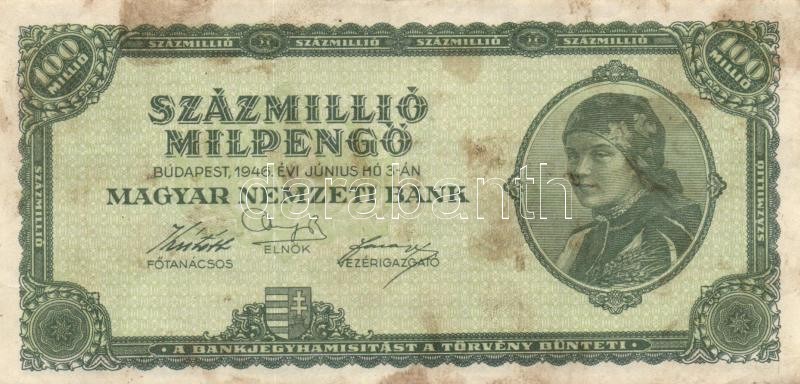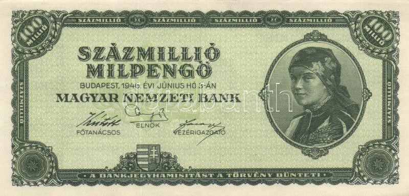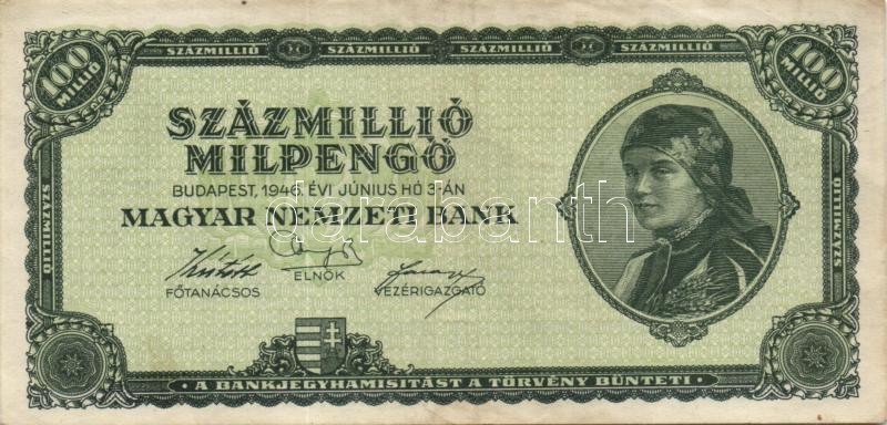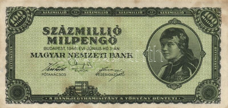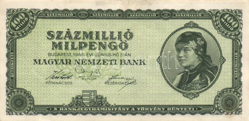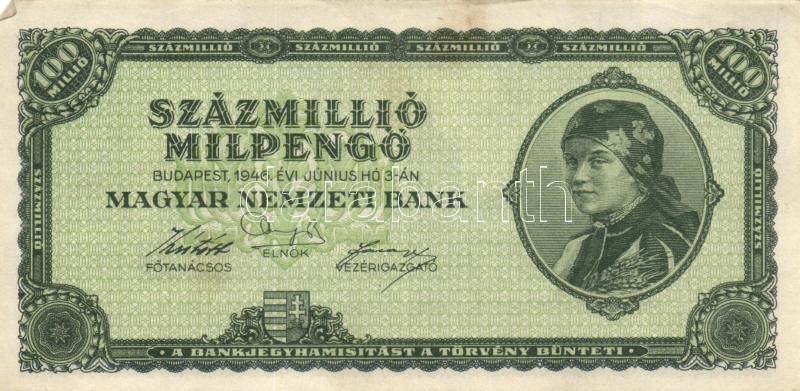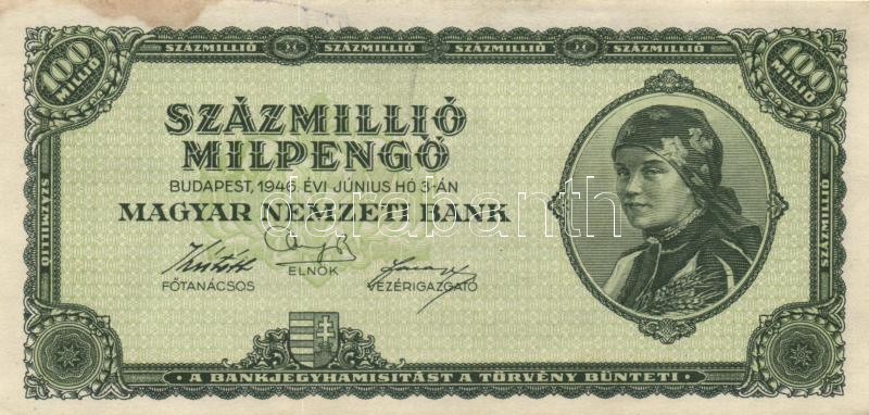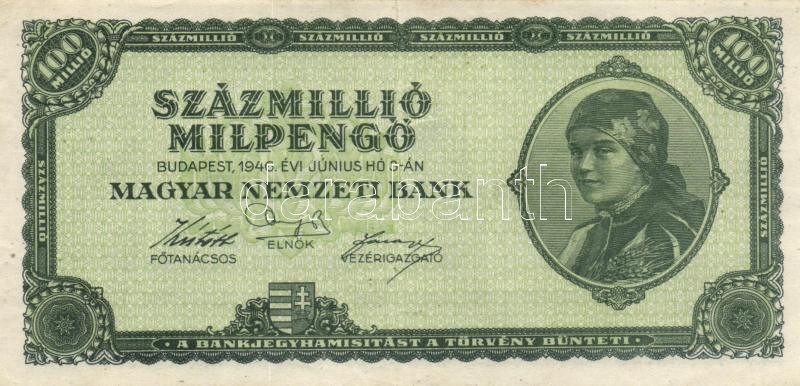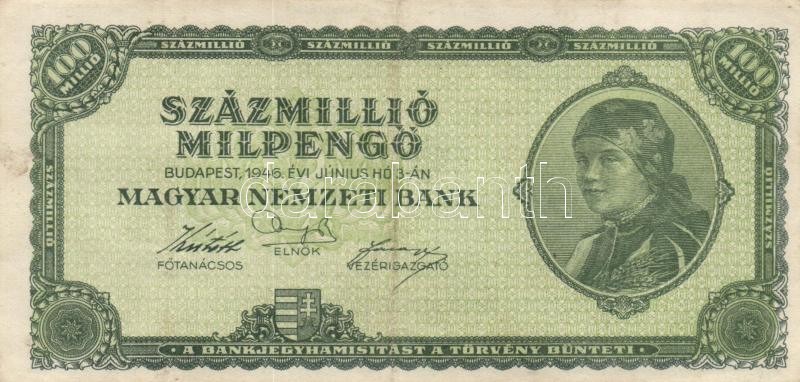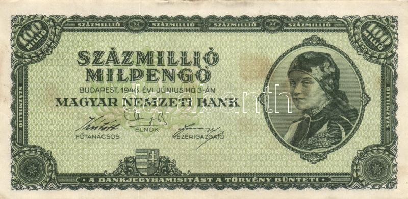 1946. 100.000.000MP (17x) T:II,II- https://www.darabanth.com/de/155-Fernauktion/155.0/Numismatik/Ungarische-Banknoten~5000346/1946-100000000MP-17x-TII-II-~II481396