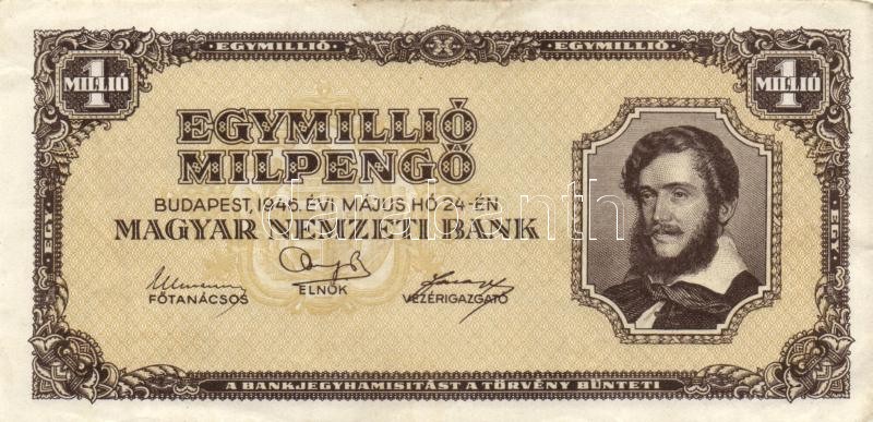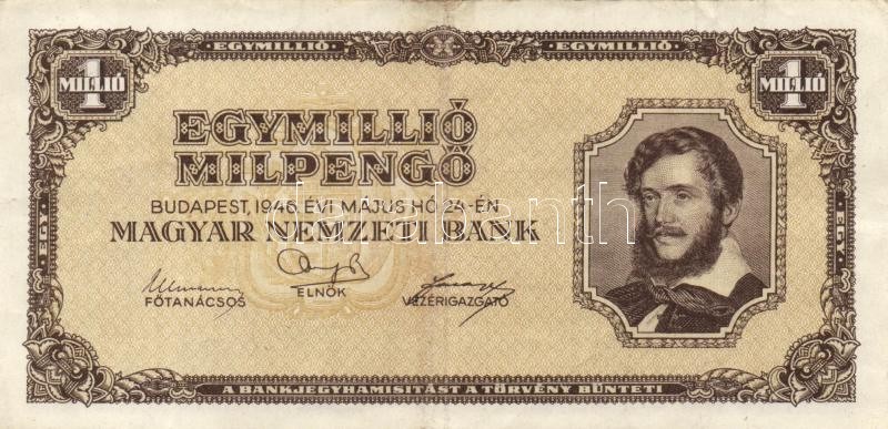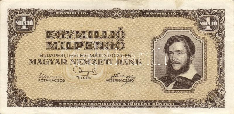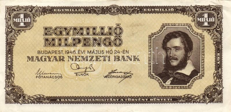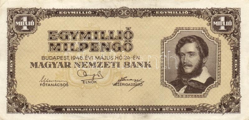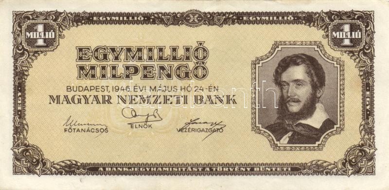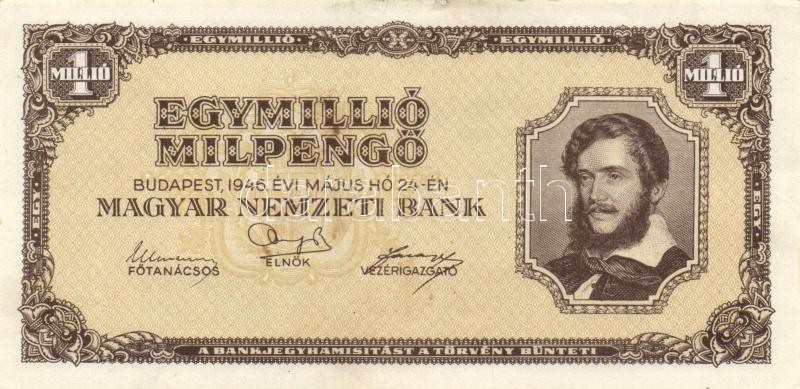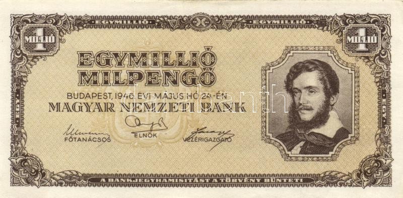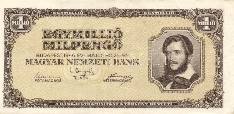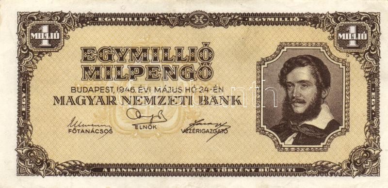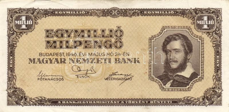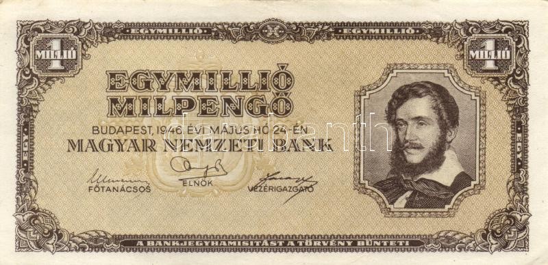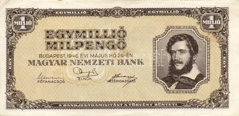 1946. 1.000.000MP (14x) T:II,II- https://www.darabanth.com/de/155-Fernauktion/155.0/Numismatik/Ungarische-Banknoten~5000346/1946-1000000MP-14x-TII-II-~II481401