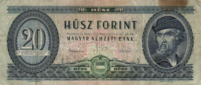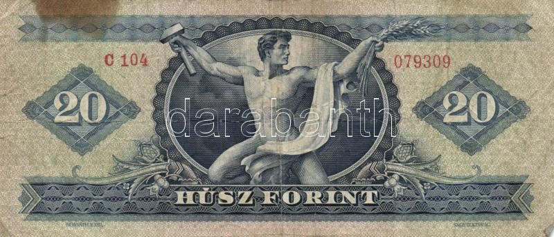 1960. 20Ft T:III,III- folt https://www.darabanth.com/de/155-Fernauktion/155.0/Numismatik/Ungarische-Banknoten~5000346/1960-20Ft-TIII-III-folt~II486595