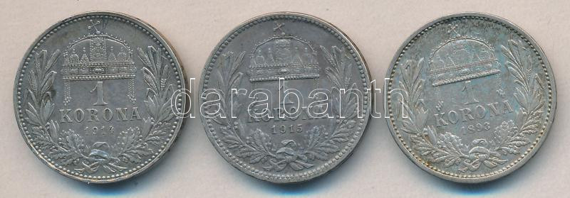 1893. 1K Ag + 1914. 1K Ag + 1915. 1K Ag T:2,2- patina https://www.darabanth.com/de/155-Fernauktion/155.0/Numismatik/Ungarische-Munzen~5000347/1893-1K-Ag-plus-1914-1K-Ag-plus-1915-1K-Ag-T2-2-patina~II484569