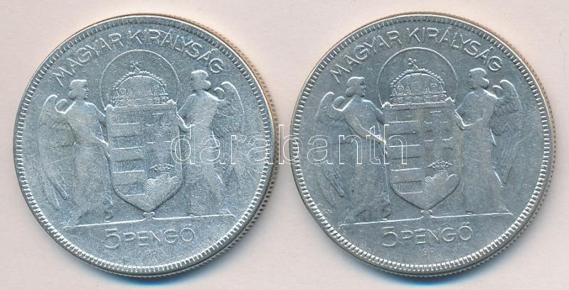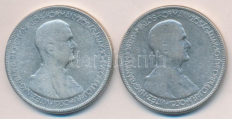 1930. 5P Ag "Horthy jobbra" (2x) T:3 https://www.darabanth.com/de/155-Fernauktion/155.0/Numismatik/Ungarische-Munzen~5000347/1930-5P-Ag-Horthy-jobbra-2x-T3~II483160