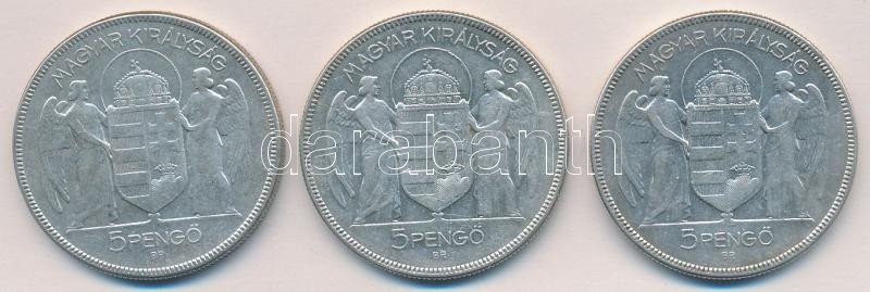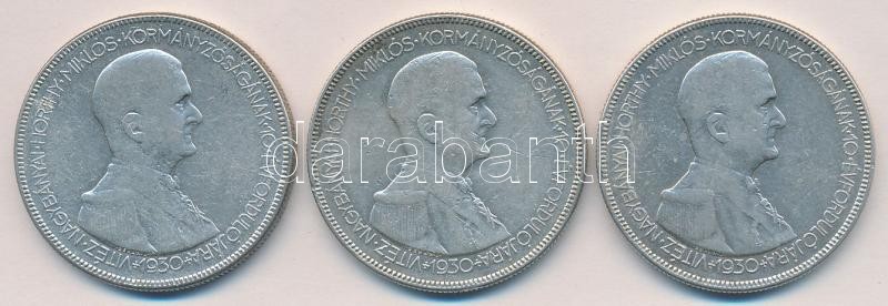 1930. 5P Ag "Horthy jobbra" (3x) T:3 https://www.darabanth.com/de/155-Fernauktion/155.0/Numismatik/Ungarische-Munzen~5000347/1930-5P-Ag-Horthy-jobbra-3x-T3~II483191