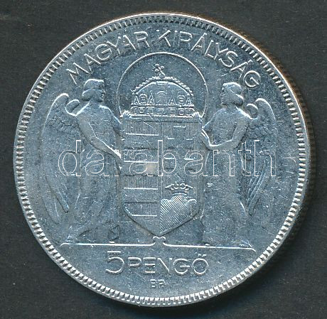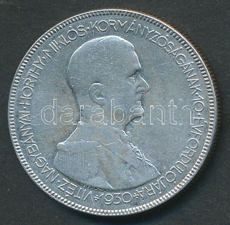 1930. 5P Ag "Horthy jobbra" T:3 https://www.darabanth.com/de/155-Fernauktion/155.0/Numismatik/Ungarische-Munzen~5000347/1930-5P-Ag-Horthy-jobbra-T3~II483127