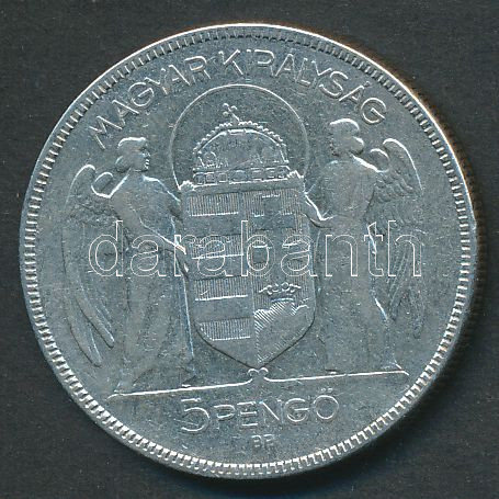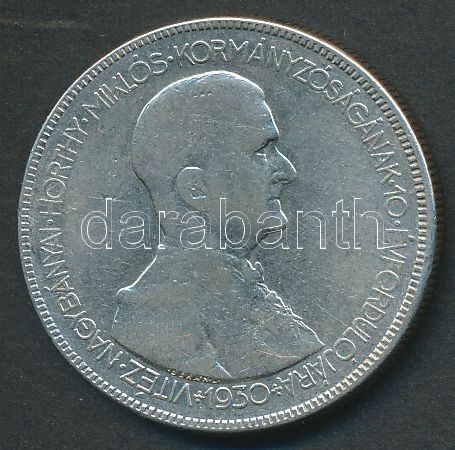 1930. 5P Ag "Horthy jobbra" T:3 https://www.darabanth.com/de/155-Fernauktion/155.0/Numismatik/Ungarische-Munzen~5000347/1930-5P-Ag-Horthy-jobbra-T3~II483129