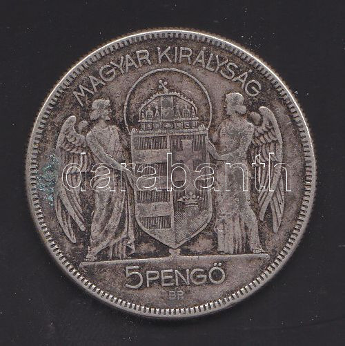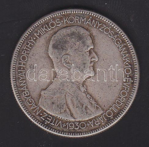 1930. 5P Ag "Horthy jobbra" T:3 https://www.darabanth.com/de/155-Fernauktion/155.0/Numismatik/Ungarische-Munzen~5000347/1930-5P-Ag-Horthy-jobbra-T3~II486273