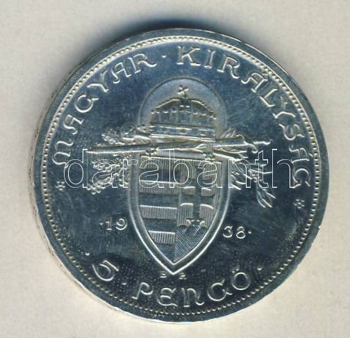 1938. 5P Ag "Szent István" T:2 https://www.darabanth.com/de/155-Fernauktion/155.0/Numismatik/Ungarische-Munzen~5000347/1938-5P-Ag-Szent-Istvan-T2~II482216