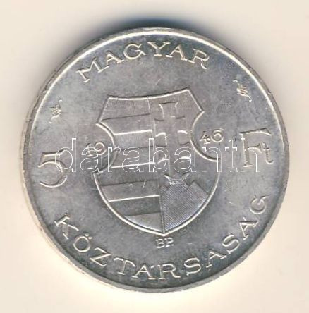 1946. 5Ft Ag "vastag Kossuth" T:2 ph. https://www.darabanth.com/de/155-Fernauktion/155.0/Numismatik/Ungarische-Munzen~5000347/1946-5Ft-Ag-vastag-Kossuth-T2-ph~II485395
