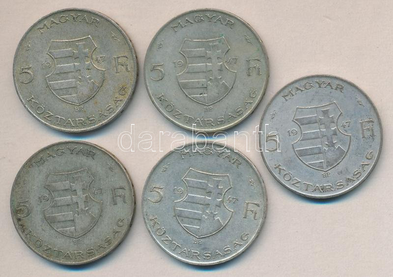 https://www.darabanth.com/de/155-Fernauktion/155.0/Numismatik/Ungarische-Munzen~5000347/1947-5Ft-Ag-5x-T2-3~II484612