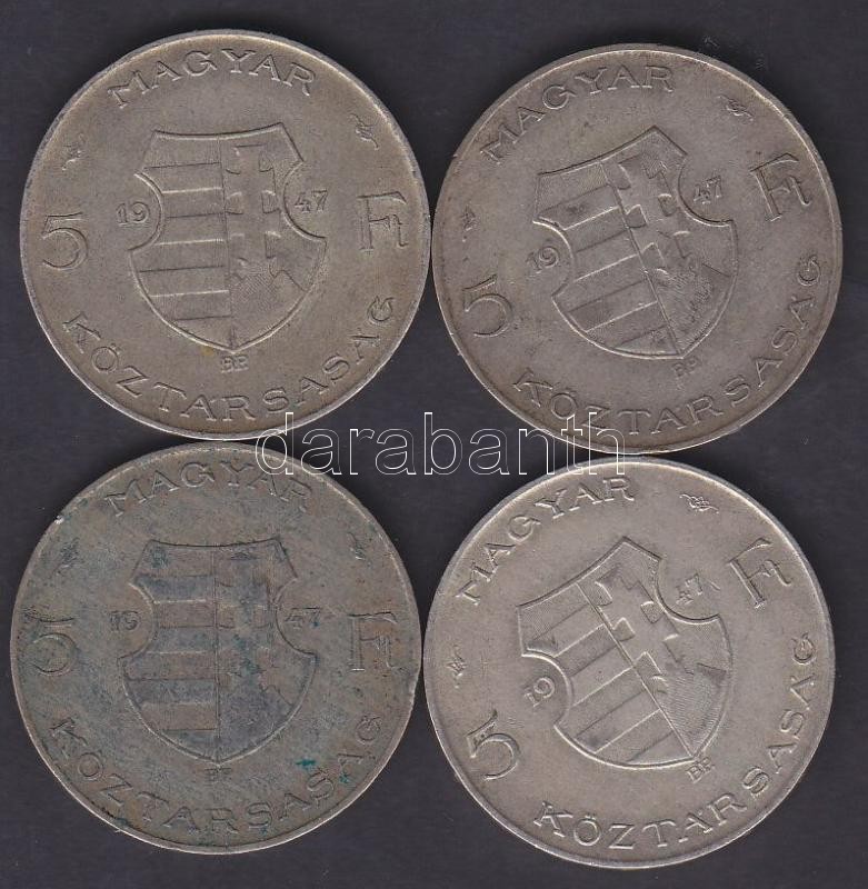 1947. 5Ft Ag "Kossuth" (4x) T:3 https://www.darabanth.com/de/155-Fernauktion/155.0/Numismatik/Ungarische-Munzen~5000347/1947-5Ft-Ag-Kossuth-4x-T3~II483294