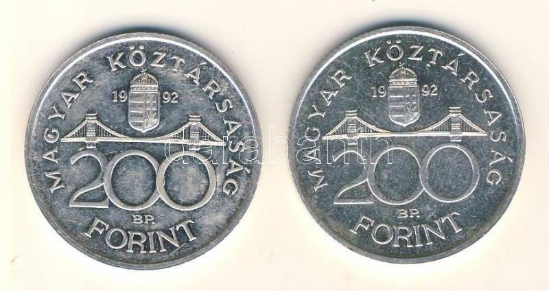 1992. 200Ft Ag "MNB" (2x) T:2+ https://www.darabanth.com/de/155-Fernauktion/155.0/Numismatik/Ungarische-Munzen~5000347/1992-200Ft-Ag-MNB-2x-T2plus~II485429