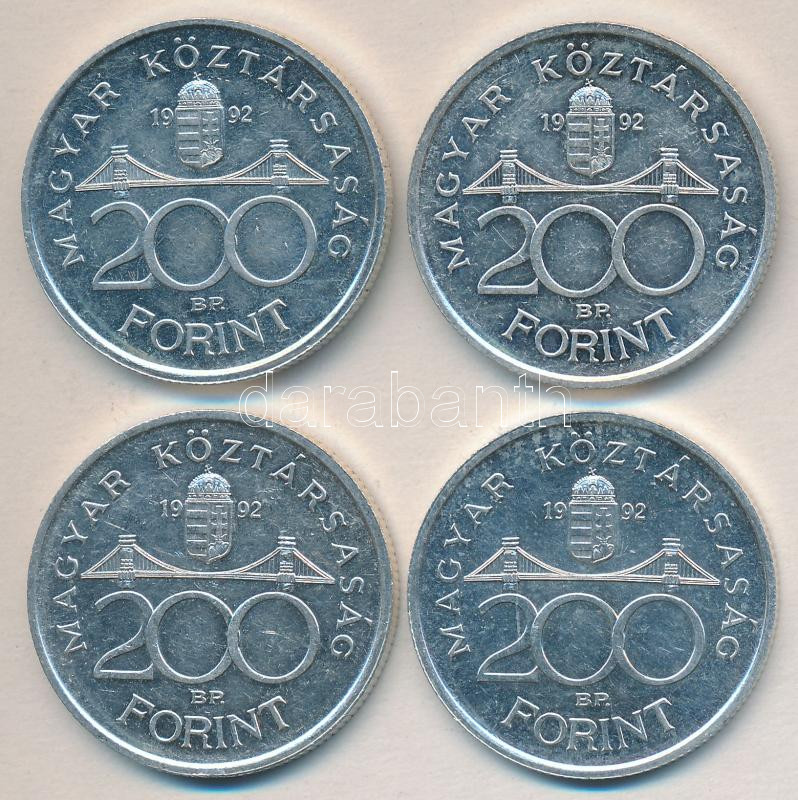 1992. 200Ft Ag "MNB" (4x) T:2+,2 https://www.darabanth.com/de/155-Fernauktion/155.0/Numismatik/Ungarische-Munzen~5000347/1992-200Ft-Ag-MNB-4x-T2plus-2~II486495