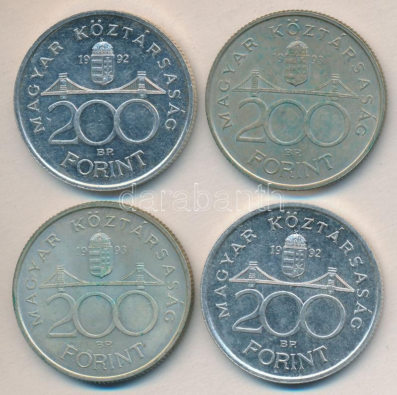 1992-93. 200Ft Ag "MNB" (4x) T:2,2- https://www.darabanth.com/de/155-Fernauktion/155.0/Numismatik/Ungarische-Munzen~5000347/1992-93-200Ft-Ag-MNB-4x-T2-2-~II486501