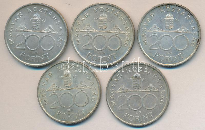 Beschreibung: 1993. 200Ft Ag "MNB" (5x) T:2-