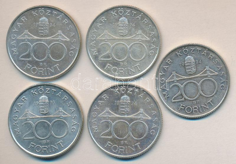 Beschreibung: 1993. 200Ft Ag "MNB" + 1994. 200Ft Ag "Deák" (4x) T:2,2-