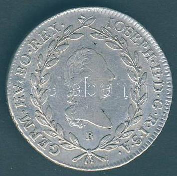 Ausztria/magyar verdejel 1786B 20Kr Ag II.József T:3+/2- https://www.darabanth.com/de/155-Fernauktion/155.0/Numismatik/Ungarische-Munzen~5000347/Ausztriamagyar-verdejel-1786B-20Kr-Ag-IIJozsef-T3plus2-~II483848