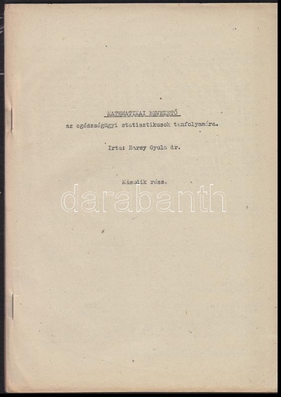 1953 2db kéziratos Egészségügyi Statisztikai jegyzet az egészségügyi statisztikusok tanfolyamáról