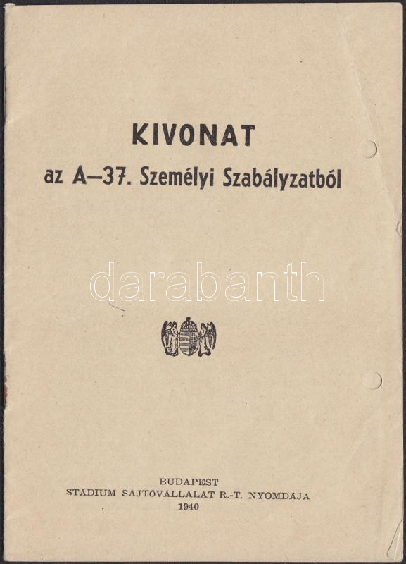 Beschreibung: 1940 Kivonat a A-37. Személyi Szabályzatból Bp. Stádium Sajtóvállat Rt Nyomda