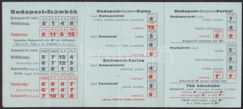 1933-as Budapest - Zsámbékvidéki Közlekedési Vállalat kihajtható menet... https://www.darabanth.com/de/156-Fernauktion/156.0/Andere-Sammelgebiete/Drucksachen~1000016/1933-as-Budapest--Zsambekvideki-Kozlekedesi-Vallalat-kihajthato-menetrendje-kis-terkeppel~II487997