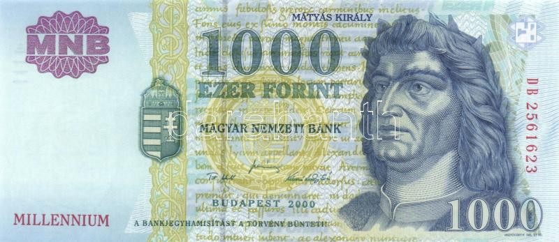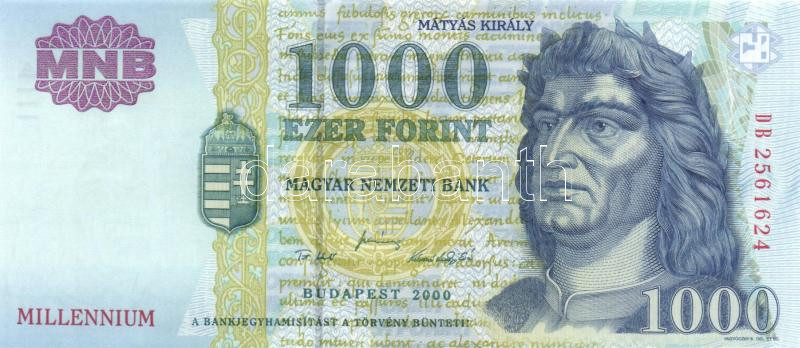 2000. 1000Ft "DB" (2x) "Millennium" egymás utáni sorszámmal T:I https://www.darabanth.com/de/156-Fernauktion/156.0/Numismatik/Ungarische-Banknoten~1000130/2000-1000Ft-DB-2x-Millennium-egymas-utani-sorszammal-TI~II490297