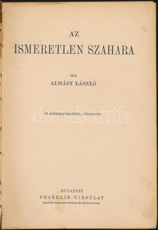 Magyar Földrajzi Társaság Könyvtára: Almásy László - Az ismeretlen Szahara 94 képpel, 1. kiadás aranyozott kiadói egészvászon kötésben, Lampel és Wodianer, Bp. Szép állapotban