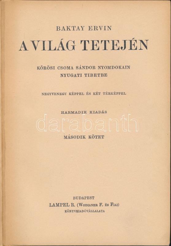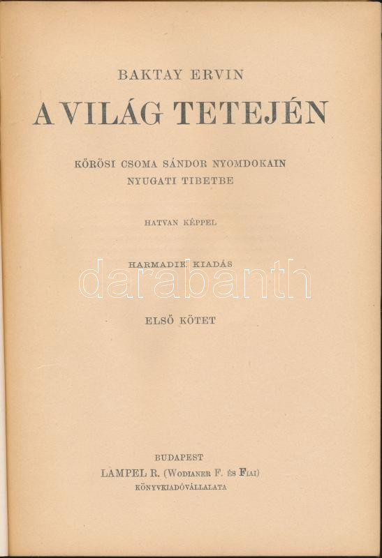 Magyar Földrajzi Társaság Könyvtára: Baktay Ervin - A világ tetején I-II. kötet.Harmadik kiadás Lampel R. Könyvkiadó vállalata Budapest. 60 db képillusztrációval