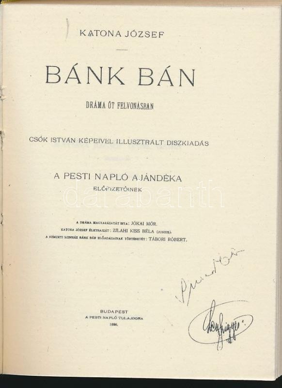 Katona József: Bánk Bán. Pesti Napló , 1899. Illusztrált, reprint min... https://www.darabanth.com/de/157-Fernauktion/157.0/Andere-Sammelgebiete/Bucher-Sonstige-Raritaten~500025/Katona-Jozsef-Bank-Ban-Pesti-Naplo--1899-Illusztralt-reprint-minikonyv-1977~II495300