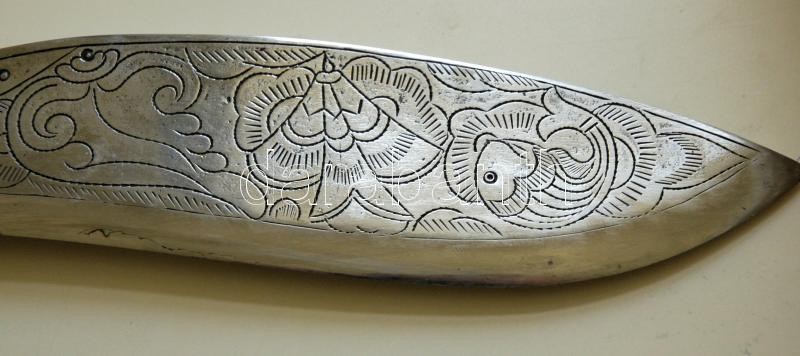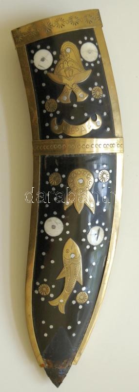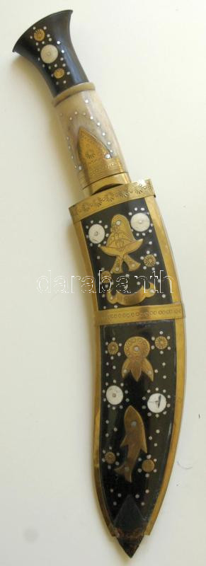 Nepáli csontnyelű dísztőr, díszített, de kissé hibás hüvellyel /