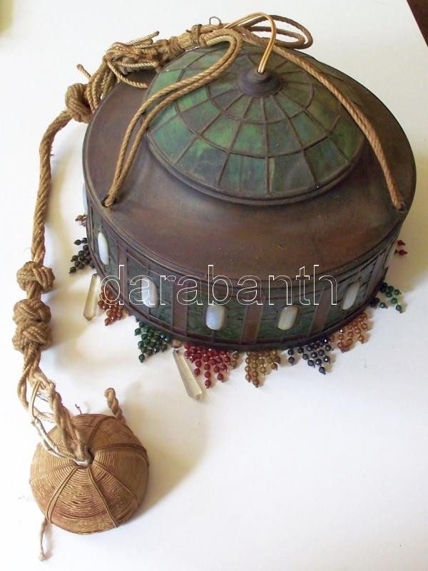 Régi, érdekes fazonú bársony-üveg csillár /
