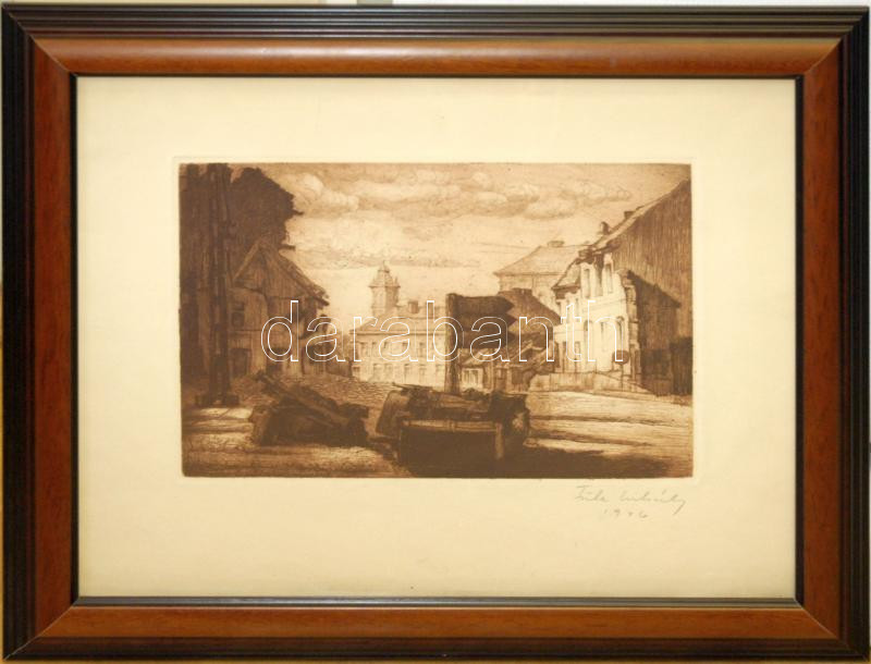 Füle Mihály (1914-2005): Városkép 1946 43x50cm igényes üvegezett fake... https://www.darabanth.com/de/157-Fernauktion/157.0/Andere-Sammelgebiete/Gemalde-und-Grafiken~500001/Fule-Mihaly-1914-2005-Varoskep-1946-43x50cm-igenyes-uvegezett-fakeretben-szinezett-rezk~II493616
