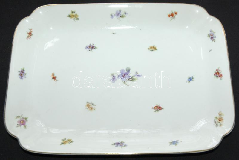 Beschreibung: Apró virágokkal díszített sorszámozott jelzett Hans & Czjzek pecsenyés tál 24x33cm