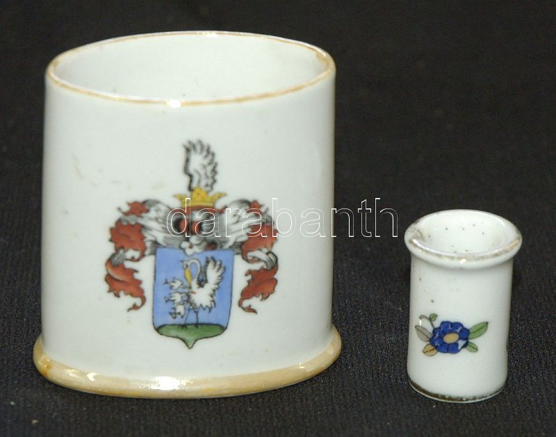 Zsolnay chinaware toothpick holder with coats of arms of Lucenec + napkin ring