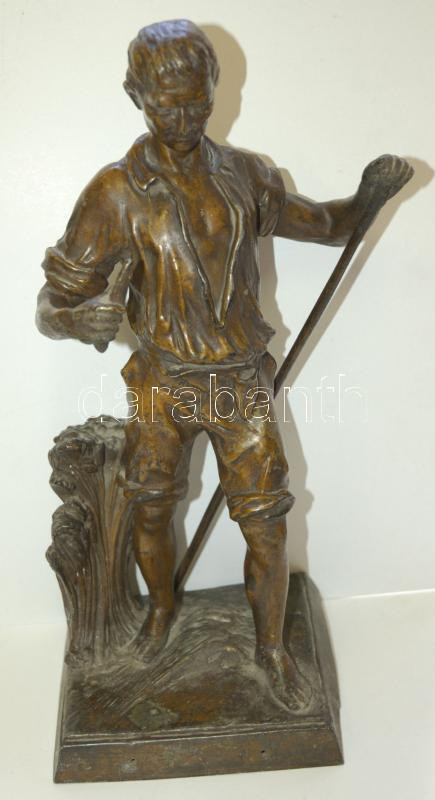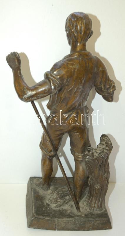 Beschreibung: Arató parasztot ábrázoló fém szobor talapzaton. Jó állapotban, a talapzat kissé repedt/
