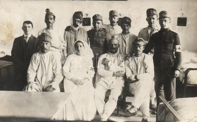 Military WWI hospital, Red Cross nurses and soldiers, group photo (EK) https://www.darabanth.com/de/157-Fernauktion/157.0/Ansichtskarten/Militar~500113/Military-WWI-hospital-Red-Cross-nurses-and-soldiers-group-photo-EK~II492214