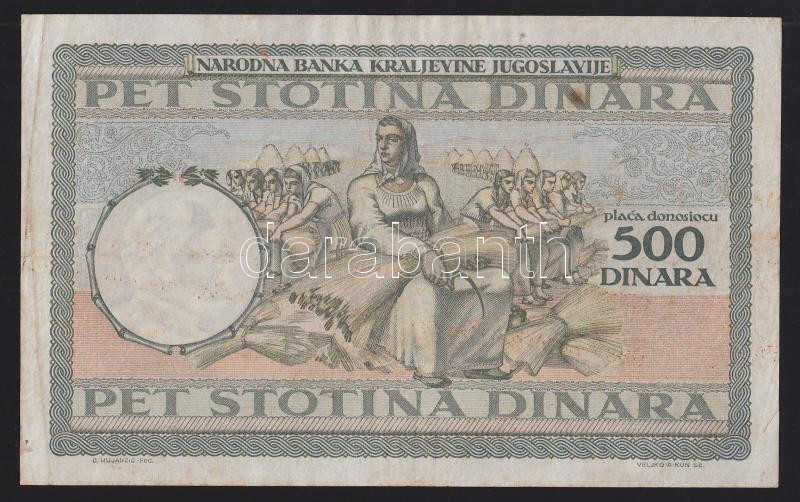 Yugoslavia 1935. 500 Dinara C:F+ https://www.darabanth.com/de/157-Fernauktion/157.0/Numismatik/Auslandische-Banknoten~500125/Jugoszlavia-1935-500D-TIIIplus-3Cbr3EYugoslavia-1935-500-Dinara-CFplus~II493249