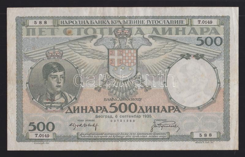Beschreibung: Jugoszlávia 1935. 500D T:III+