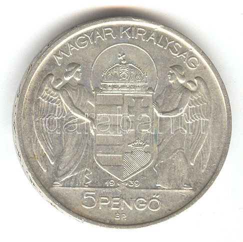 1939. 5P Ag "Horthy - balra" T:2- https://www.darabanth.com/de/157-Fernauktion/157.0/Numismatik/Ungarische-Munzen~500122/1939-5P-Ag-Horthy--balra-T2--3Cbr3E~II493839
