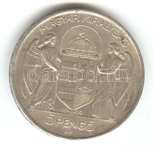 1939. 5P Ag "Horthy - balra" T:3 https://www.darabanth.com/de/157-Fernauktion/157.0/Numismatik/Ungarische-Munzen~500122/1939-5P-Ag-Horthy--balra-T3~II496720