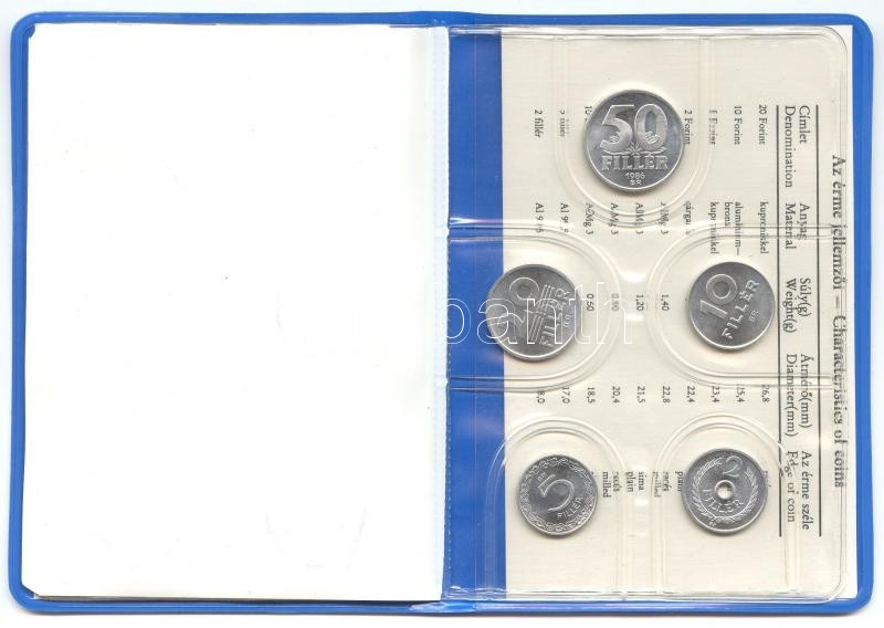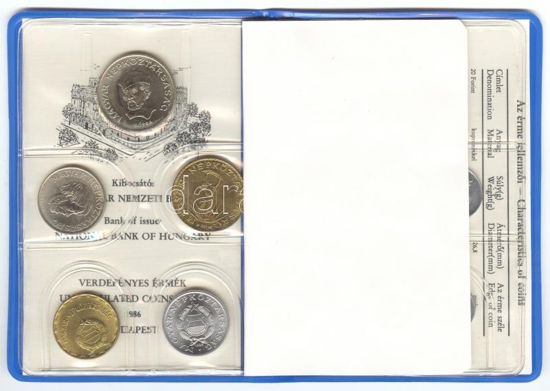 Beschreibung: 1986. 2f-20Ft 10db klf érmés forgalmi sor kék műbőrtokban T:1