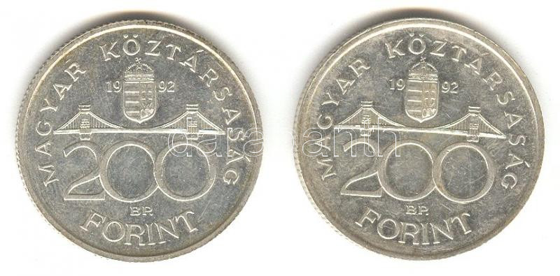 1992. 200Ft Ag "MNB" (2x) T:2 https://www.darabanth.com/de/157-Fernauktion/157.0/Numismatik/Ungarische-Munzen~500122/1992-200Ft-Ag-MNB-2x-T2~II494192