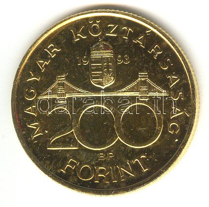 Beschreibung: 1993. 200Ft Ag "MNB" aranyozott T:2