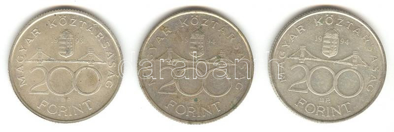 1993-94. 200Ft Ag "MNB" / "Deák" (3x) T:2,2- https://www.darabanth.com/de/157-Fernauktion/157.0/Numismatik/Ungarische-Munzen~500122/1993-94-200Ft-Ag-MNB-Deak-3x-T2-2-~II494202