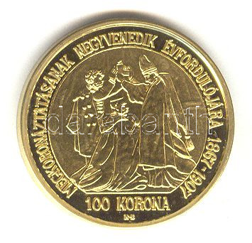 "Magyar aranypénzek utánveretben - Ferenc József jubileumi 100 korona"... https://www.darabanth.com/de/157-Fernauktion/157.0/Numismatik/Ungarische-Munzen~500122/Magyar-aranypenzek-utanveretben--Ferenc-Jozsef-jubileumi-100-korona-aranyozott-Ag-emlekerem-~II494451