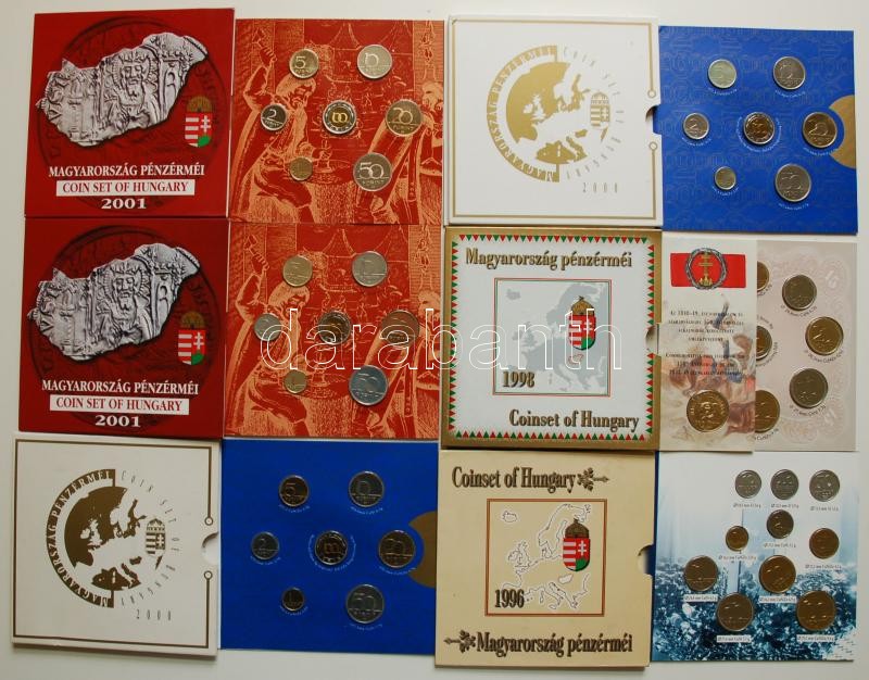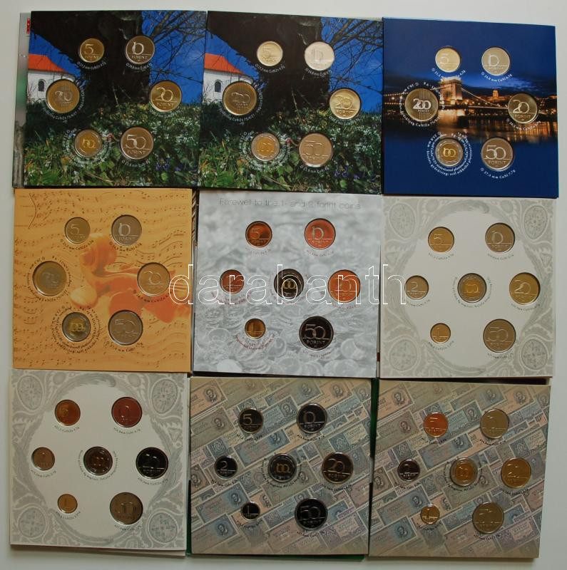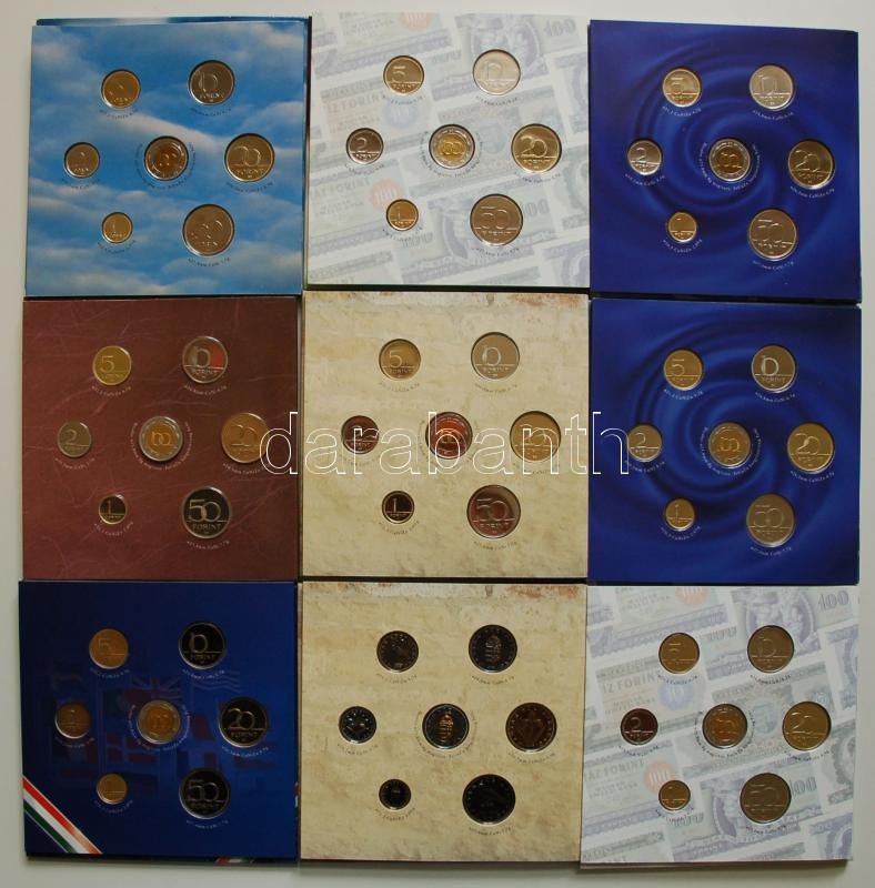 Magyarország forgalmi szettek gyűjtemény 27db összesen: 1993. dísztokos-egy lapos T:BU + 1995. dísztokos T:BU + 1996. dísztokos T:BU + 1996. nejlon fóliás T:PP + 1998. dísztokos T:BU + 2000. dísztokos T:BU + 2000. dísztokos T:PP + 2001. dísztokos T:PP + 2001. dísztokos T:BU + 2002. dísztokos T:BU + 2002. dísztokos T:PP + 2003. "Deák" dísztokos T:PP + 2004. dísztokos T:PP + 2005. "József Attila" dísztokos T:BU + 2005. "József Attila" dísztokos T:BU + 2006. dísztokos T:BU + 2006. "60 éves a forint" dísztokos T:BU + 2006. "60 éves a forint" dísztokos T:PP + 2007. díszcsomagolt T:PP + 2007. díszcsomagolt T:BU + 2007. "Berán Lajos" dísztokos T:BU + 2007. "Berán Lajos" dísztokos T:PP + 2008. dísztokos T:PP + 2009. "Haydn" dísztokos T:PP + 2009. dísztokos T:PP + 2010. "Pécs" dísztokos T:PP + 2010. "Pécs" dísztokos T:BU
