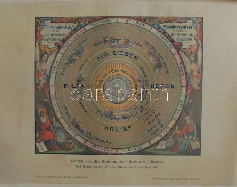 Hans Kraemer: Die Weltall und Menschneheit. A Deutsches Verlagshaus Bond&Co. III. és IV. Kötet ,kiadói réz veretes szecessziós félbőr kötésben sok illusztrációval, az egyik könyv elázott. Természettudományos ismeretterjesztő könyv.