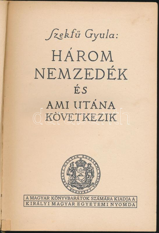 Szekfű Gyula - Három nemzedék és ami utána következik. Első kiadás! Bp... https://www.darabanth.com/de/158-Fernauktion/158.0/Andere-Sammelgebiete/Bucher-Geschichte~192/Szekfu-Gyula--Harom-nemzedek-es-ami-utana-kovetkezik-Elso-kiadas-Bp-1934-kir-Egyetemi~II503503