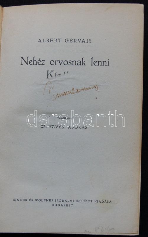Albert Gervais: Nehéz orvosnak lenni Kínában, Singer és Wolfner Kiadó, Bp., é.n., fordította Dr. Hevesi András, kiadói egészvászon kötésben, kissé kopott állapotban