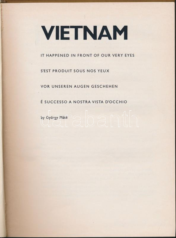 György Máté: Vietnámi képesalbum, angol-francia-német-olasz leírásokkal, Atheneum Nyomda, é.n., aranyozott egészvászon kötésben