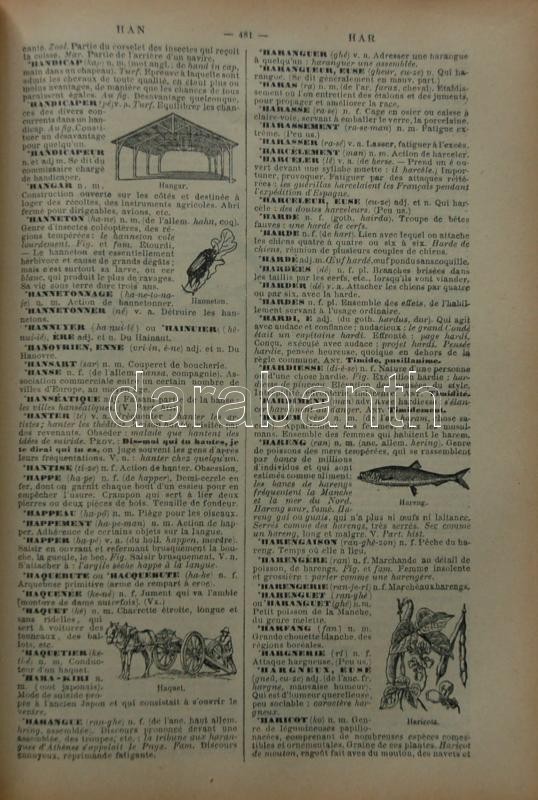 Kis Larousse lexikon kb 6000 metszettel, fényképekkel és térképpel, Illusztrált egészvászon kötésben szép állapotban francia nyelven, kissé laza kötés, egy helyen hiba / Nouveau Petit :Larousse illustré. Paris 1925 1665 p.