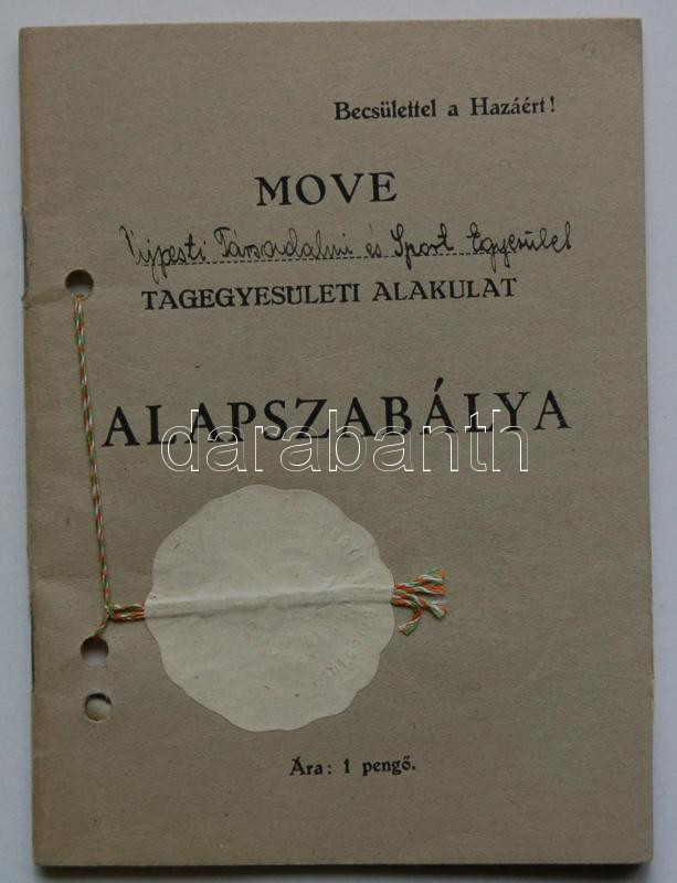 1943 Újpesti MOVE (Magyar Országos Véderő Egylet) Tagegyesületi Alakul... https://www.darabanth.com/de/158-Fernauktion/158.0/Andere-Sammelgebiete/Dokument~169/1943-Ujpesti-MOVE-Magyar-Orszagos-Vedero-Egylet-Tagegyesuleti-Alakulat-alapszabalya~II498969